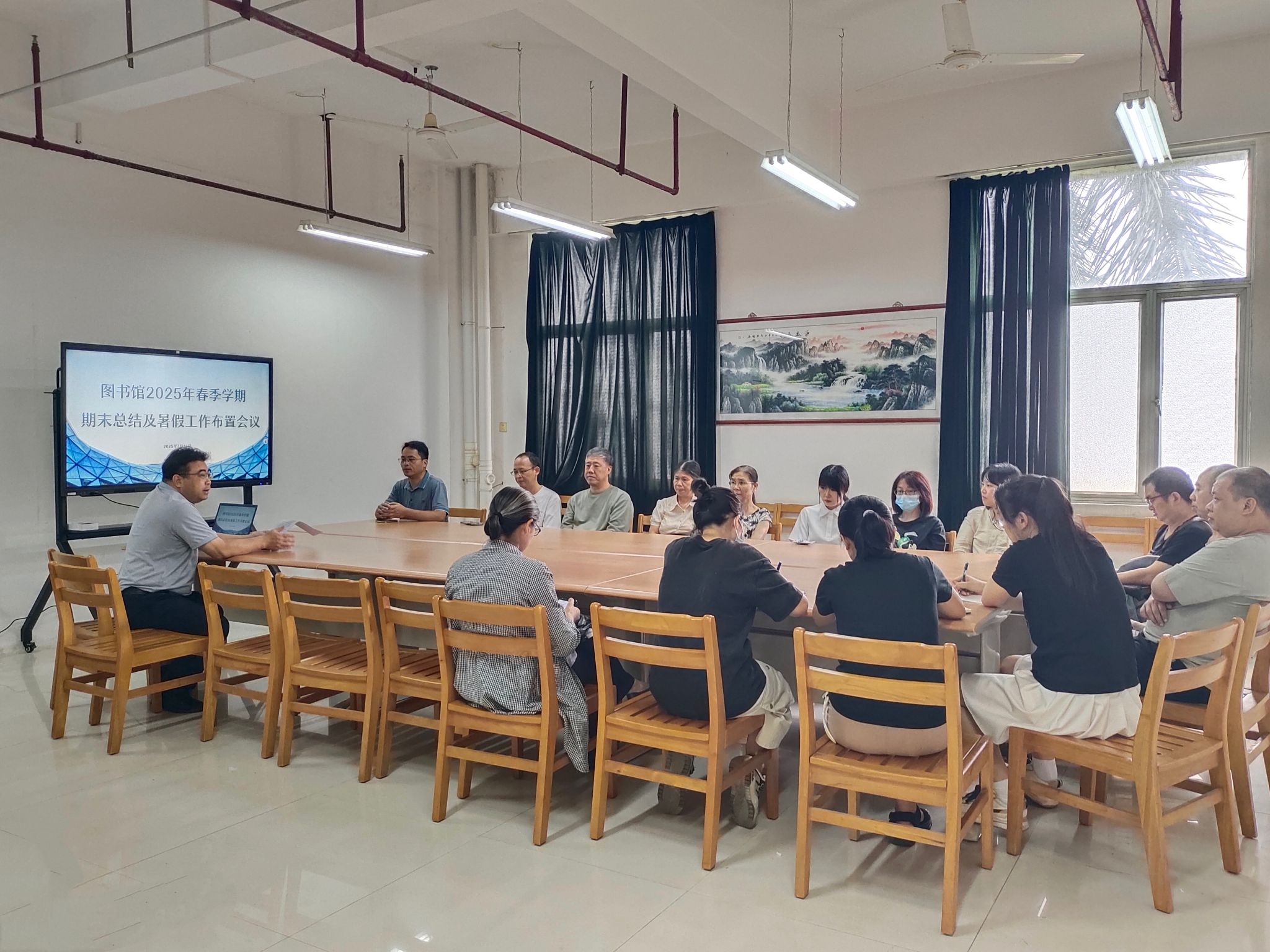 7月11日上午,图书馆在馆内301会议室召开2025年春季学期期末总结暨暑期工作部署会。会议全面梳理了本学期各项工作成效,重点部署了暑假期间各项保障任务,并对全力迎接即将到来的本科教育教学审核评估工作进行了深入动员和周密安排。