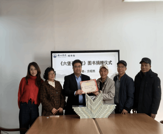1月15日上午,我校图书馆三楼会议室举行了一场简朴而温馨的图书捐赠仪式。我校校友方绍然先生一行专程返校,将其潜心编著的《六堡寻茶记》一书捐赠予校图书馆。图书馆馆长刘卫东、文学与传媒学院潘家猛博士,食品与制药工程学院李赞虔博士,社会合作处朱晓芹老师及图书馆相关业务主管出席仪式,共同见证这份满载桑梓深情与母校厚谊的珍贵馈赠。